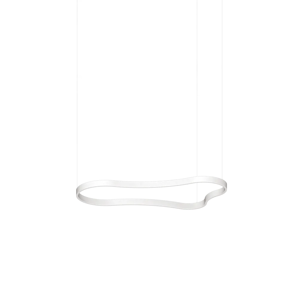 Moderné dizajnové svietidlo Waves dostupné v rôznych farbách zlatá, biela alebo čierna a v rôznych dĺžkach. Integrovaný LED svetelný zdroj 3000 K. Lampa je navrhnutá s kovovým rámom, doplnená opálovým difúzorom, záves s oceľovými káblami.