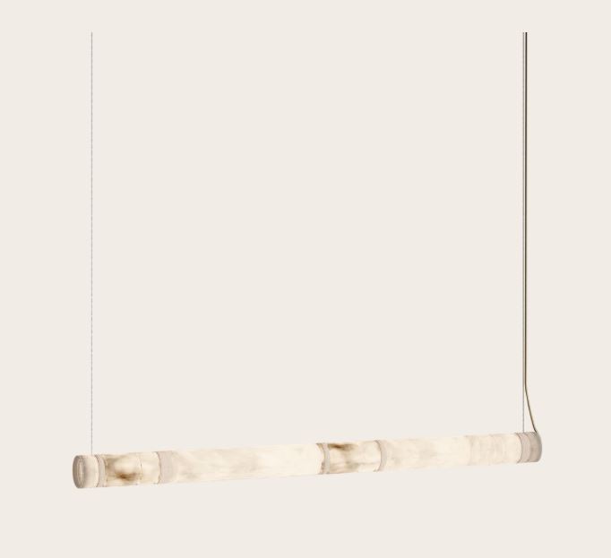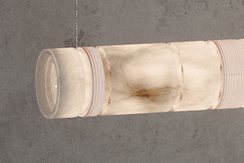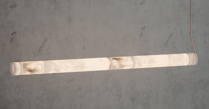 Závesné svietidlo Bowie dostupné v 2 dĺžkach 130 cm a 190 cm, 1400lm, 3000K. Dominantným prvkom nad jedálenským stolom, konferenčným stolom ale nad recepčným pultom hotelov. Alabaster tienidlo s 3D tlačenýi krytkami, krémový trextilný kábel.