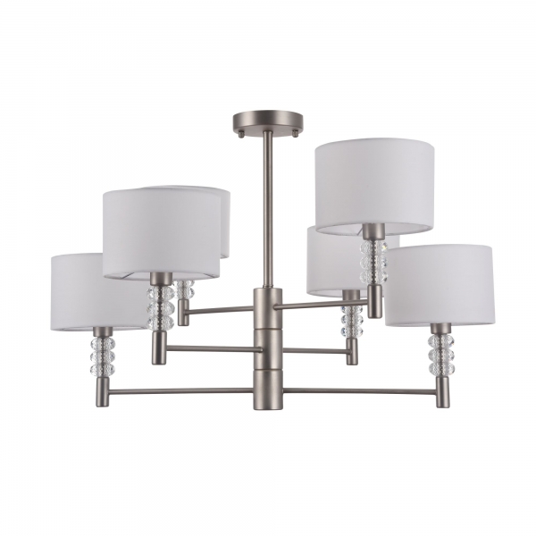 Mám záujem o produktSéria svietidiel Lincoln ponúka závesnú, nástennú a stolnú verziu. Závesné moderné svietidlo Maytoni série Lincoln MOD527PL-06N základňa chróm doplnená textilnými tienidlami. Dekoračné sklenené elementy na základni.